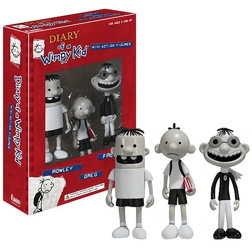 While I’m still talking about these three designs in particular, I might as well mention these Diary of a Wimpy Kid mini action figures of Greg, Rowley and Fregley from Funko that I probably bought around 2011, which I’ve been giving renewed attention to in light of this movie. They are 3-D depictions of these characters that long predate the film, so staring at these figures for years might be why I was not as initially appalled at these designs as some other people may have been, and they are what I am judging the designs off of. If you still don’t know what I’m talking about, you can see these images of the figures online as well as the ones I own below: