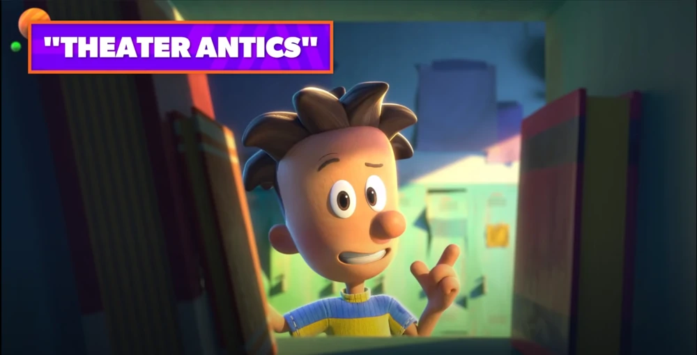 After this, the theme song plays, and I have to say, it was pretty surreal to hear a song (outside of the musical) that I can associate with Big Nate. The song itself, while kind of short, is pretty great, evoking Nate’s rebellious nature while implementing 2-D animations of Nate’s art style. While I was also proved incorrect that 2-D animations of Peirce’s illustrations would be implemented in the series, it’s just as great to see 2-D animations of Nate’s illustrations being implemented. The part with Ultra-Nate (who oddly enough hasn’t been mentioned by name yet so far) fighting a monstrous test was my favorite. The song ends with Nate being squashed by his own logo; a hilarious final scene that nicely represents how things don’t always work out of him despite his self-proclaimed awesomeness.