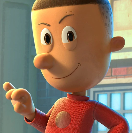 Nate’s distinctive spiky hair looks great in 3-D, with the smallest spike at the top of his head placed at the center of his scalp. Notably, a hairline was added to the back of his head, which he does not have in the strip and books. Realistically speaking, the hairline makes sense, especially when compared to Francis’s and Teddy’s hairlines which they do have in the strip and books, so I think it was a good idea. His jeans being torn at one knee is also a nice touch. Francis wears shorts all the time for whatever reason, and I’m curious to see if there will ever be a moment in the series in which he wears pants.
